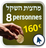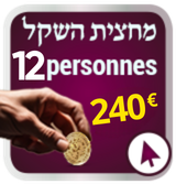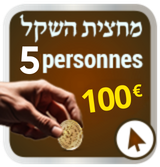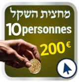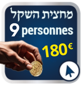 La valeur du Ma’hatsit Hashékel est de 20 € minimum par personne (ou 73 NIS), montant fixé par le Grand Rabbinat d'Israël. Tizkou Lamitsvot !