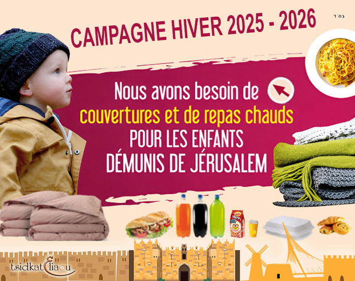 Le temps des vacances d’été est arrivé, mais les enfants démunis de Jérusalem n’auront pas le privilège d'en profiter, car la crise ne connait pas de répit. 20 % des enfants juifs vivent sous le seuil de la pauvreté en Israël… C’est pourquoi, dès à présent et comme chaque année, Tsidkat-Eliaou se mobilise pour préparer la rentrée scolaire de 160 enfants issus de familles particulièrement défavorisées afin de leur offrir des cartables et des fournitures scolaires pour qu’ils aient au moins la possibilité d’étudier dans de bonnes conditions. L'association veut également offrir à ces enfants des goûters et des repas chauds pour ne pas qu’ils étudient le ventre vide, car beaucoup d'enfants ne mangent pas 3 repas par jour !